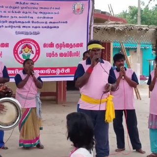 பெண் குழந்தைகளின் பாதுகாப்பு குறித்து கலைநிகழ்ச்சி மூலம் கிராம மக்களுக்கு விழிப்புணர்வு